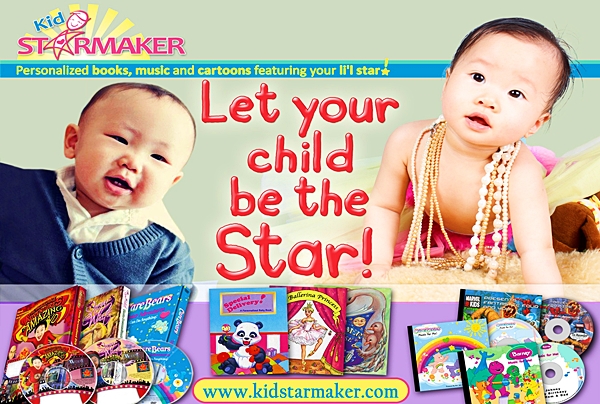 Nurture your children’s confidence,creativity and imagination through these US-made, age-appropriate, personalized products. With Kid StarMaker, they become the heroes of their own hardbound books! Our personalized storybook CDs feature your kids and characters such as Spiderman and the Fantastic Four in a multi-media storybook adventure! Kid StarMaker music albums have Barney and the Care Bears singing your children’s name. Our best-selling 3D animation videos make them the star of their own cartoon as Snow White or the superhero Amazing Kid! They can also star with The Muppets, Dora the Explorer and Barney!